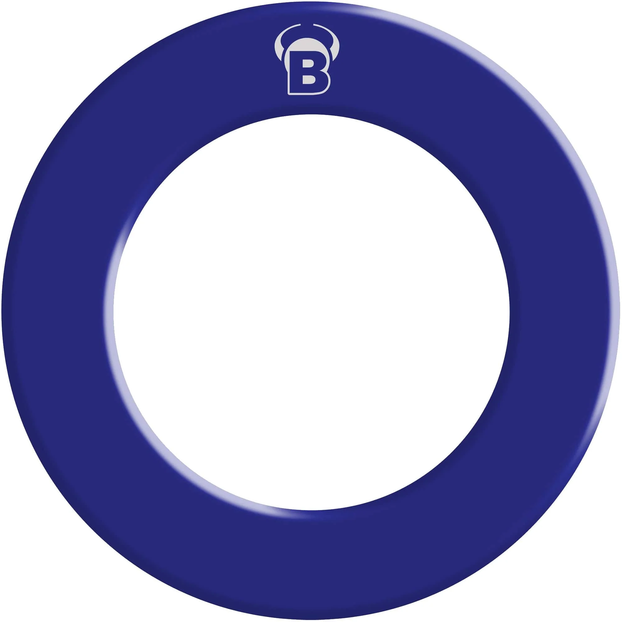 BULL'S Professional Dartboard Surround - Plain - Grey. The BULL'S Premium Dartboard Surround provides professional protection and a modern look for any bristle dartboard. Made from high-quality PU material with a thickness of approximately 3.5 cm, it reliably protects the wall, reduces falling darts, and helps preserve both darts and flooring. The improved fit with an inner diameter of around 45 cm ensures perfect compatibility with all known bristle dartboards - one size fits all. The surround is easy to install and sits securely on the board. With a width of about 12 cm, it offers generous wall protection, ideal even forbeginner players. The total diameter measures 68 cm. The BULL'S logo is placed prominently at the top of the surround. Available in Black, Red, Blue, Grey, and Green.