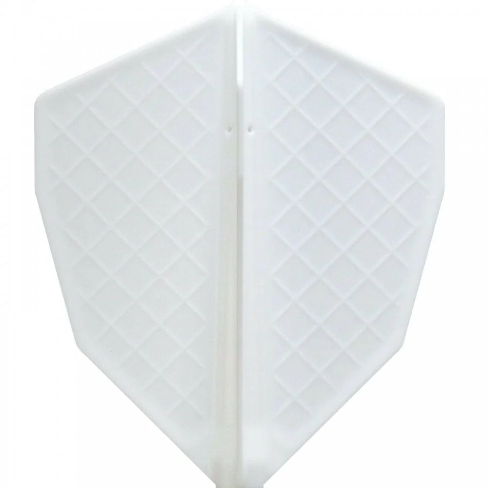 Cosmo Fit Flight Pro - S-Series - S-4 in white. The Fit Flight Pro is the most innovative Flight and Shaft System. Common Flight Shapes are installed by pushing the full flight system onto the shaft, creating a complete unit. These white S-Series flights are loosely based on a fantail shape flight, in varying widths. Only to be used with Cosmo Fit Shafts.
