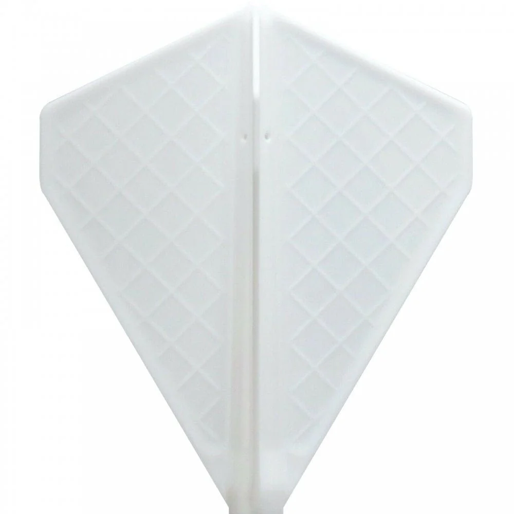 Cosmo Fit Flight Pro - V-series - V-1 in white. The Fit Flight Pro is the most innovative Flight and Shaft System. Common Flight Shapes are installed by pushing the full flight system onto the shaft, creating a complete unit. These white V-Series dart flights are based on the kite flights with varying degrees of widths. Only to be used with Cosmo Fit Shafts.