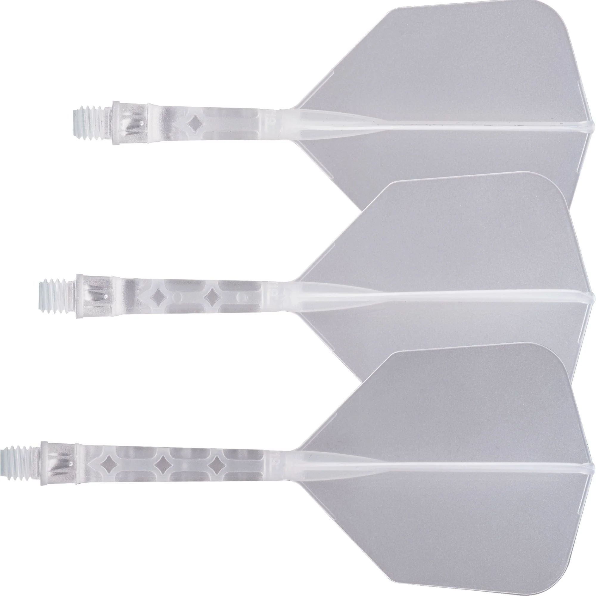 Cuesoul Rost T19 Integrated clear dart shaft and big wing clear flights. This fully moulded system screws into the barrel, just as with a standard stem. The clear moulded flight features a reinforcing rib to help prevent Robin Hooding. The medium clear dart shaft is measured for what is visible once the dart is assembled. Shaft length: 28mm