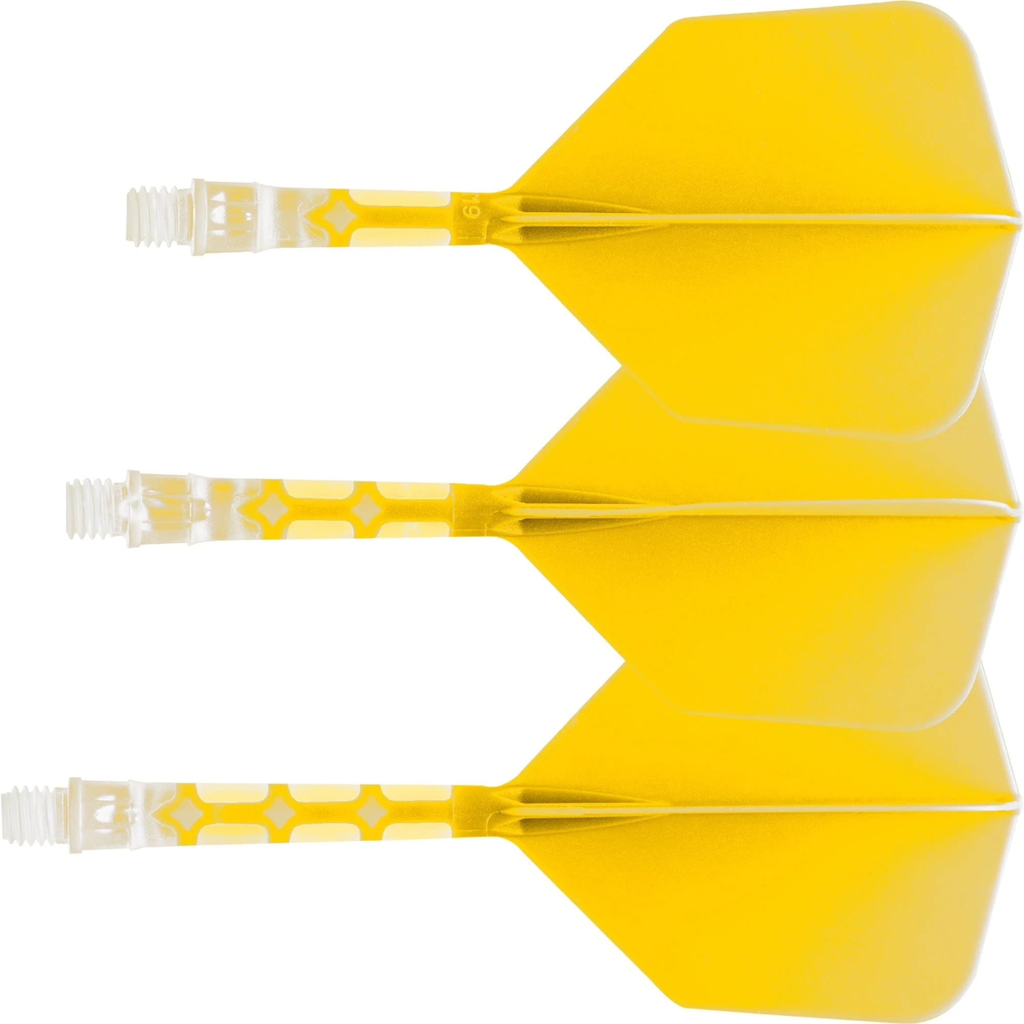 Cuesoul Rost T19 Integrated clear dart shaft and big wing yellow flights. This fully moulded system screws into the barrel, just as with a standard stem. The yellow moulded flight features a reinforcing rib to help prevent Robin Hooding. The medium clear dart shaft is measured for what is visible once the dart is assembled. Shaft length: 28mm