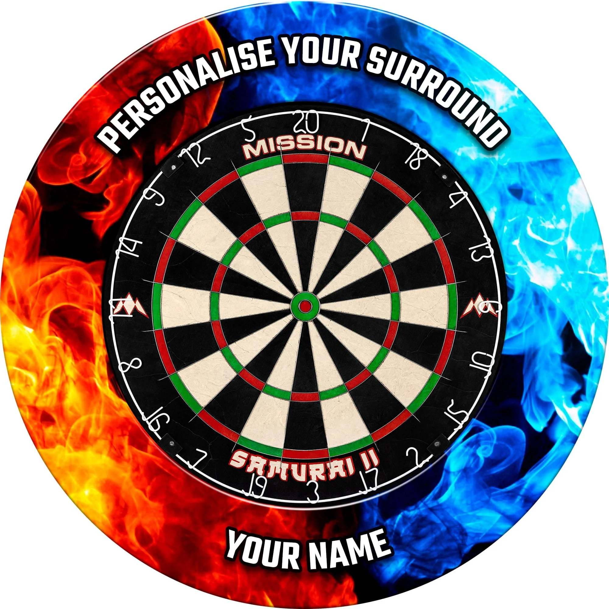 Designa Heavy Duty Dartboard Surround - Design Collection. Designa Dartboard Surrounds are perfect to protect the area around the dartboard from stray darts. Suitable for all bristle dartboards. NB Dartboard not included. Designa Dartboard Surround - Design Collection - Heavy Duty - Fire and Ice. This item is printed to order and may take an extra 2-6 days for delivery